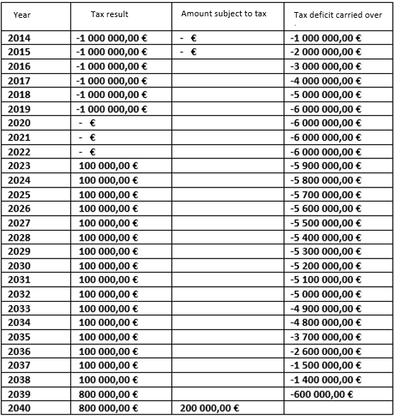 Due to the 17-year limitation of tax losses, losses for the years 2017, 2018 and 2019 can no longer be carried forward from the respective years 2035, 2036 and 2037.